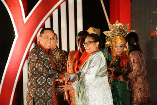 Penghargaan diserahkan oleh Menteri Pemberdayaan Perempuan dan Perlindungan Anak Republik Indonesia Yohana Yembise kepada Bupati Muba H Dodi Reza Alex di Ballroom Hotel Swiss-Bel Pekanbaru, Sabtu (22/7) malam.