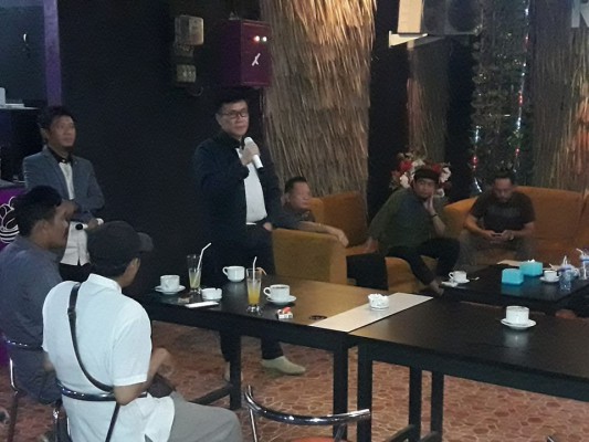 Bakal calon Walikota Palembang H Mularis Djahri saat menjelaskan misinya dalam diskusi yang diselenggarakan oleh Palembang Brother (PB) di Café Renata, Bukit Besar, Palembang, Jumat (25/8).