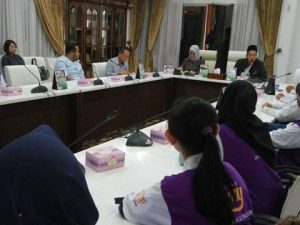 Hj Lury Elza Alex Noerdin yang menggagas SSC dan Panitia yang juga salah seorang Tim Seleksi Sriwijaya Super Camp (SSC), Erwanto Yusuf ST saat rapat bersama di Griya Agung, Jumat (8/9).