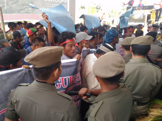 Tidak satu pun anggota DPRD yang keluar menanggapi aksi mereka. Hal itu membuat massa emosi dan mengeluarkan kata-kata kekecewaan terhadap wakil rakyat.