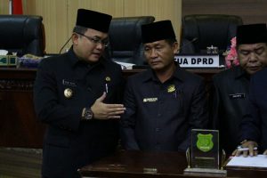 Bupati Muba H Dodi Reza Alex menyaksikan penandatanganan Persetujuan DPRD Kabupaten Musi Banyuasin Terhadap Pinjaman Daerah Kabupaten Musi Banyuasin, Rabu (20/9).