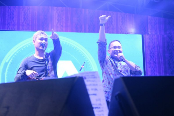 Bupati Muba H Dodi Reza Alex berduet dengan vokalis Armada, Rizal, membawakan lagu Pergi Pagi Pulang Pagi.