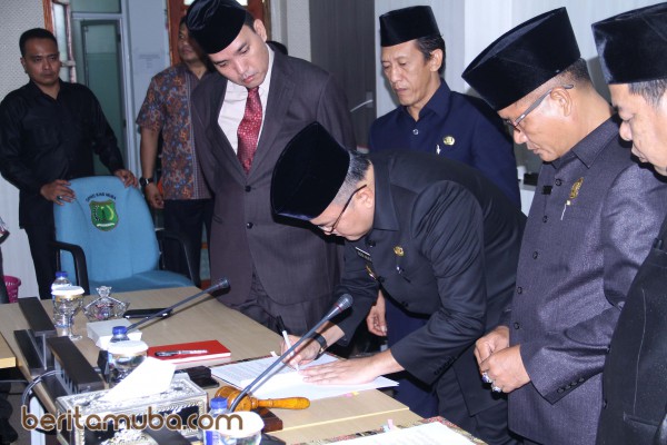 Sekayu, BP–Dewan Perwakilan Rakyat Daerah (DPRD) Muba dan Pemerintah Kabupaten (Pemkab) Muba menandatangani nota kesepakatan bersama antara DPRD dan kepala daerah terhadap Kebijakan Umum Anggaran (KUA) dan Prioritas serta Plafon Anggaran Sementara (PPAS) rancangan Anggaran Pendapatan dan Belanja Daerah (APBD) Kabupaten Musi Banyuasin Tahun Anggaran 2018, di Ruang Rapat Badan Musyawarah (Banmus) DPRD Muba, Jumat (29/9).