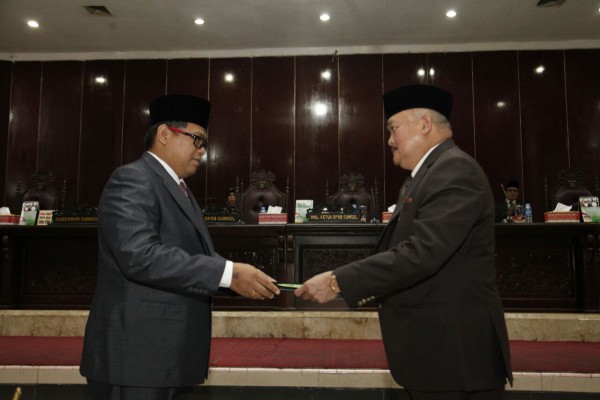 Rapat paripurna sendiri di pimpin Ketua DPRD Sumsel HM Giri Ramandha N Kiemas dan dihadiri Gubernur Sumsel H Alex Noerdin dan para undangan.
