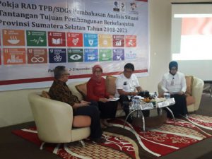 Bapeda Provinsi Sumatera Selatan (Sumsel) menggelar Rapat Kelompok Kerja Penyusunan Rencana Aksi Daerah Tujuan Pembangunan Berkelanjutan (RAD – TPB / Sustainable Development Goals (SDGs) dilantai III gedung Bapeda Sumsel Jalan Kapten A.Rivai Palembang, Kamis (2/11).