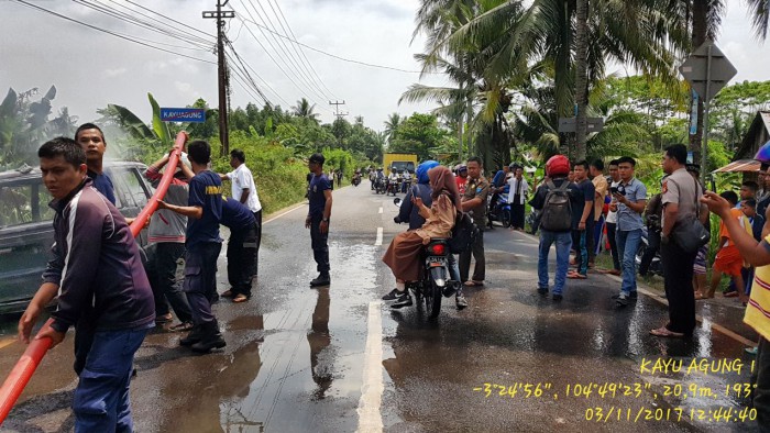 Lantaran posisi terjadinya berada di pinggir jalan linas timur, tentu saja, seketika memacetkan jalan. Apalagi warga sekitar langsung mendatangi lokasi menonton kejadian tersebut.