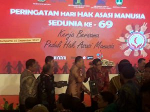 Penyerahan penghargaan tersebut dilakukan oleh Presiden Joko Widodo (Jokowi) dan Menteri Hukum Dan HAM Yansona Laoly dalam Peringatan Hak Hak Asasi Manusia (HAM) Sedunia untuk tahun 2017 diiaksanakan di Hotel Sunan m Kota Solo Minggu (10/12).