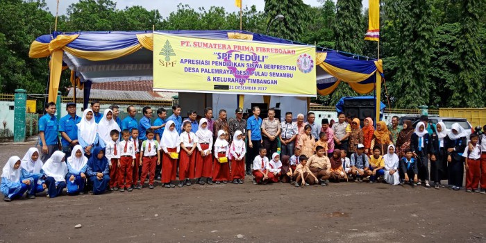 Inderalaya, BP — Manajemen PT Sumatra Prima Fiberboard (SPF) Kabupaten Ogan Ilir (OI) memberikan bantuan beasiswa kepada 59 siswa SD, SMP dan SMA di Wilayah Kecamatan Inderalaya Utara, Kamis (22/12/2017) di Lapangan SPF Inderalaya.