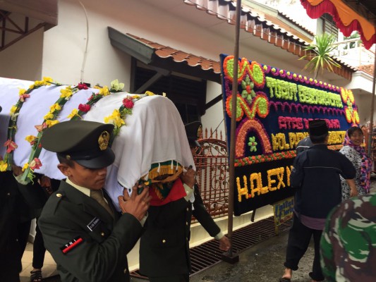 Di kediaman rumah duka, terlihat juga sanak keluarga, tetangga, sahabat dan juga para anggota TNI terus berdatangan.