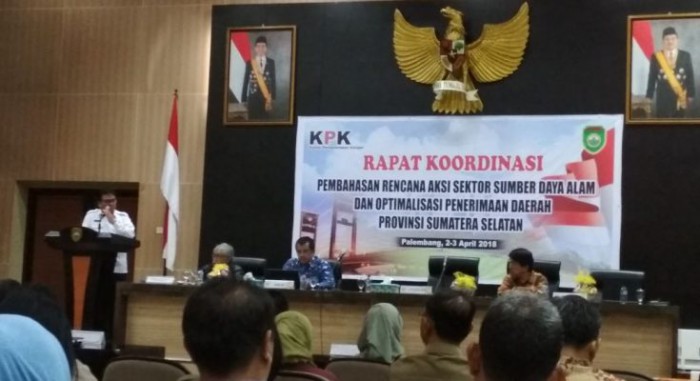 Palembang, BP–Pemerintah Provinsi Sumatera Selatan bersama Komisi Pemberantas Korupsi (KPK) Republik Indonesi melakukan rapat koordinasi pembahasan rencana aksi sektor sumber daya alam (SDA) dan optimalisasi penerimaan daerah Provinsi Sumsel, di Auditorium Bina Praja Pemprov Sumsel, Senin (2/4).