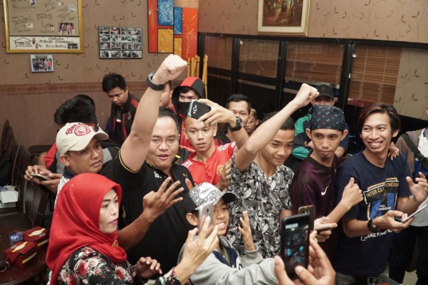 “Menang telak, SFC juara, kito pacak,” teriak ratusan komunitas bola yang hadir dalam rangkaian nobar dengan Dodi Reza Alex Noerdin.
