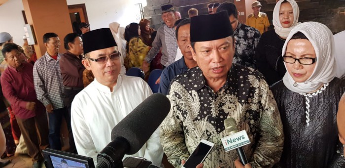Calon Walikota Palembang didampingi ESP saat berada di kediaman ESP, Senin (18/6).