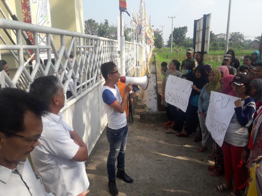 Puluhan massa dari Masyarakat Miskin Kota (MMK) Provinsi Sumatera Selatan ( Sumsel) menggelar demo depan kantor KPU Sumsel , Selasa (24/7).