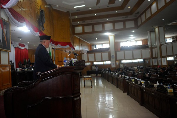 Rapat paripurna dipimpin Wakil Ketua DPRD Sumsel M Yansuri dan didampingi Gubernur Sumsel H Alex Noerdin dan para undangan dan kepala dinas dan instansi terkait.