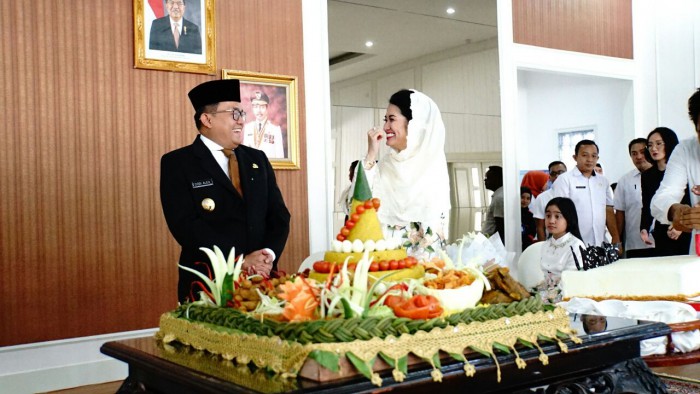 Dipengujung acara, Ketua TP PKK Muba Hj Thia Yufada diberikan surprise buket bunga dari suaminya, H Dodi Reza Alex Noerdin, kemudian pemotongan tumpeng yang disaksikan Wakil Bupati, Sekda, dan FKPD, dilanjutkan dengan pemotongan kue tart disaksikan istri Wakil Bupati, istri Sekda dan istri para FKPD Muba. #arf