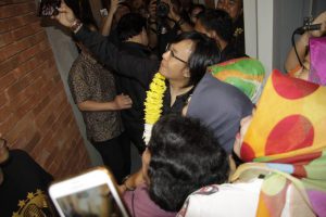 Meski penuh sesak dan teriakkan para fans, namun penyanyi berambut gondrong tersebut tetap dengan ramah melayani permintaan para pengunjung untuk berswafoto.
