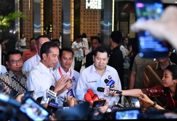 Presiden RI Joko Widodo (Jokowi) membuka pembekalan calon anggota legislatif Partai Persatuan Indonesia (Perindo) bersama Ketua Umum Perindo Hary Tanoesoedibjo. Kepada 575 caleg DPR RI, Jokowi berbagi kiat dan pengalaman keberhasilannya menjadi wali kota Solo, gubernur DKI Jakarta, hingga menjadi presiden.