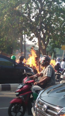 Mendadak heboh di Jalan Demang Lebar Daun Palembang dekat RS Siti Khatijah, Kamis (27/9) sekitar pukul 07.00.