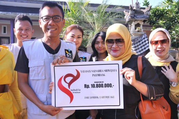 “Ini sudah jadi kegiatan rutin Salsabila Sriwijaya. Nah, kali ini dana amal rutin bulanan diserahkan untuk merigankan sedikit beban saudara saudara kita yang menjadi korban gempa di Lombok,” ungkap founder Yayasan Salsabila Sriwijaya, Hj Lury Elza Alex Noerdin.