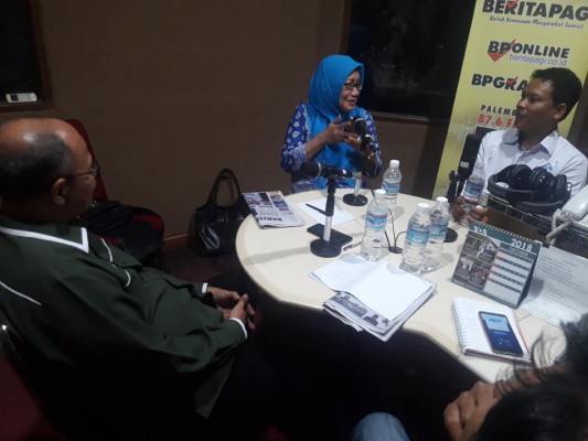Dr Muhammad Adil MA, Ketua Lembaga Kajian Naskah Melayu , Universitas Islan Negeri (UIN) Raden Fatah Palembang, Ketua Masyarakat Sejarawan Provinsi Sumsel, Dr Farida R Wargadalem Msi dan anggota tim transisi dan sinkronisasi Gubernur Sumsel H Herman Deru dan Wakil Gubenur Sumsel H Mawardi Yahya, Dr Periansyah dalam talk show sejarah di radio BP Trijaya, Selasa (2/10) dengan Tema “ Gubernur Baru, Bagaimana Penyelamatan Sejarah dan budaya Sumsel…?