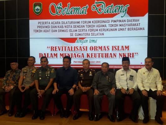 Silaturahmi Unsur Pimpinan Daerah Provinsi, Kabupaten dan Kota dengan Tokoh Agama, Tokoh Masyarakat, Tokoh Adat, dan Ormas Islam dengan tema ” Revitalisasi Ormas Islam dalam Menjaga Keutuhan NKRI” di gelar di Griya Agung Palembang, Selasa (30/10).