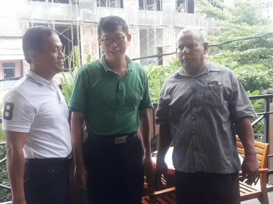 Djaja Suryanto (tengah) didampingi tim pengacaranya, yakni Salim Gunawan dan Ahmad Hassan, Minggu (4/11).
