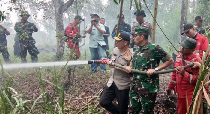 Pangdam II Sriwijaya, Mayjen TNI Irwan, beserta Kapolda Sumsel, Irjen Zulkarnain Adinegara dan Komandan Satuan Tugas Kebakaran Hutan dan Lahan (Dansatgas karhutla) Kolonel Iman Budiman hari ini, Rabu (10/10) mengadakan patroli udara untuk melihat langsung titik-titik api (hotspot) yang menyebabkan kabut asap di Kota Palembang beberapa hari lalu.
