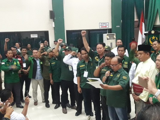 Dukungan pengurus PBB seluruh Sumsel kepada pasangan Capres dan Cawapres RI Joko Widodo (Jokowi) dan Ma’ruf Amin di Rakorwil IV dan Pembekalan Caleg PBB Se-Sumsel di Asrama Haji Palembang, Sabtu (15/12).0