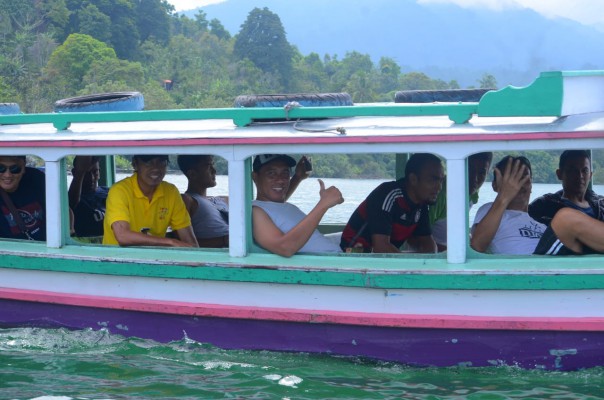 Pemain tampak menikmati perjalanan menyeberangi Danau Ranau. Bahkan, sang Pelatih Kepala Nasir Salassa memilih berada di atas kapal untuk lebih merasakan sensasi perjalanan. Selama perjalanan, pemain pun terus mengabadikan dengan berfoto.