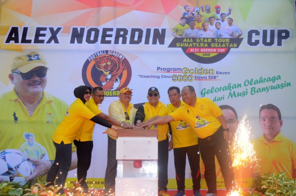 Dalam kesempatan ini, sang Pembina AN Cup H Alex Noerdin bersama Bupati Muba Dodi Reza Alex didampingi Ketua Pelaksana Alex Noerdin Cup Eddy Sofyan, panitia Lury Elza Alex dan Patra Radezayansyah, resmi me-launching Football Acedemy Alex Noerdin yang bermarkas di Muba.