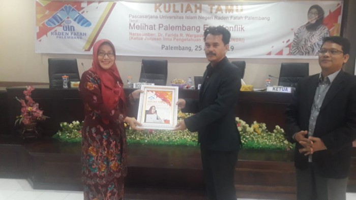 “Konflik Palembang dengan Inggris dan Belanda salah satunya karena faktor sumber daya alam Kesultanan Palembang Darussalam yang kaya dan ditopang dengan letak geografis yang sangat strategis,” kata Ketua Masyarakat Sejarawan Indonesia (MSI) cabang Provinsi Sumatera Selatan (Sumsel) yang juga Ketua Jurusan Ilmu Pengetahuan Sosial FKIP Unsri Dr Farida R. Wargadalem, M.Si saat menjadi dosen tamu tema Pascasarjana UIN Raden Fatah Palembang “Melihat Palembang Era Konflik” di lantai III aula PPS UIN Raden Fatah Palembang, Kamis (25/4).Kegiatan yang dikemas dalam Kuliah Tamu ini dibuka oleh Prof. Dr. H. Duski Ibrahim, M.Ag.