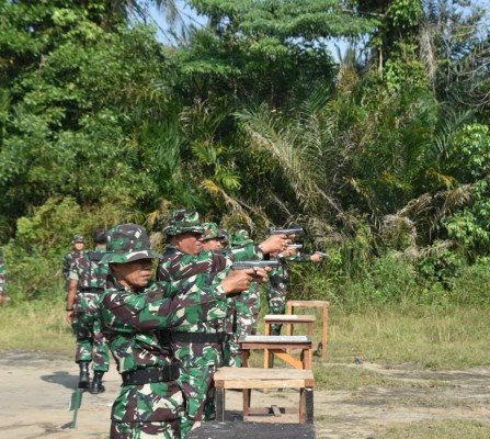 Dalam rangka mengasah dan meningkatkan kemampuan menembak, prajurit Korem 044/Gapo melaksanakan Latihan Menembak Senjata Ringan (Latbakjatri) jenis Pistol dan Senapan bertempat di lapangan tembak Yonarhanud-12/SBP Jln. Palembang-Sekayu KM.18, Serong, Sukamoro, Talang Kelapa Kabupaten Banyuasin, Kamis (9/5).