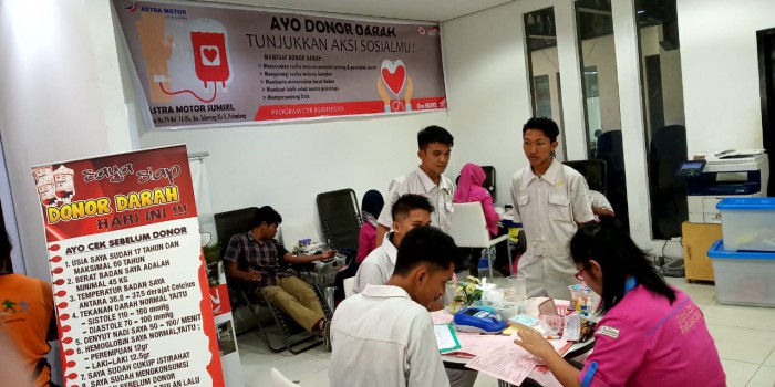 Dalam rangka menyambut ulang tahun Astra Motor yang ke-49 tahun, Astra Motor Sumsel bersama Palang Merah Indonesia (PMI) kota Palembang baru saja mengadakan donor darah di Main Dealer Astra Motor Sumsel yang berlokasi di Kelurahan 14 Ulu Palembang, Jumat, 14 Juni 2019.