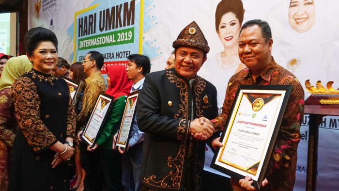 Penghargaan ini diberikan pada acara pembukaan Hari UMKM International 2019 dan diserahkan langsung oleh Gubernur Sumatera Selatan, Herman Deru kepada Sekretaris Perusahaan PT Pusri Palembang, R.A Rahim di Grand Inna Daira Hotel Palembang.
