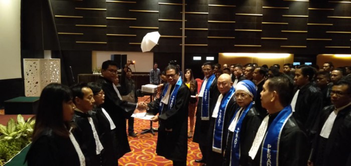 Perhimpunan Advokat Indonesia (Peradi) Palembang menggelar pelantikan dan pengambilan sumpah advokat Peradi tahun 2019 di wilayah Peradilan Tinggi Palembang , di ballroom Hotel Aston, Palembang, Kamis (11/7).Sebanyak 139 advokat dari total 141 advokat baru yang semestinya dilantik.