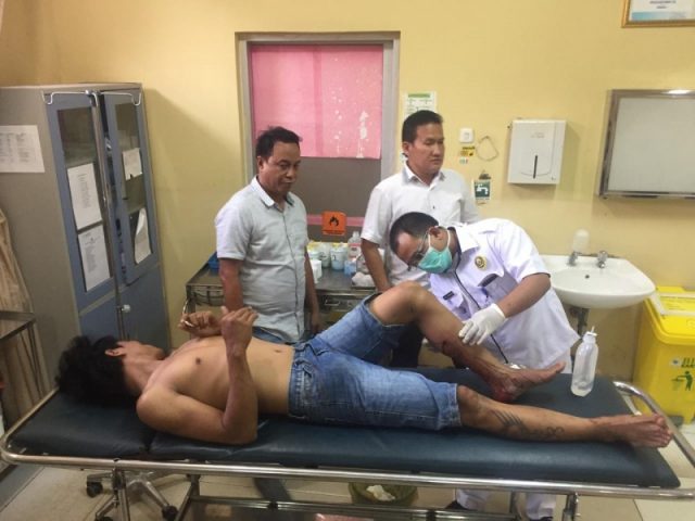 Sarkowi (31) terpaksa ditembak kaki kirinya oleh Unit V Subdit III Ditreskrimum Polda Sumsel karena mencoba kabur saat anggota akan menangkapnya Senin (5/8).