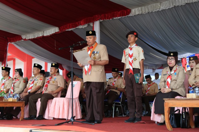 Dalam sambutannya, Bupati OKU, Drs H Kuryana Azis, membacakan sambutan Ketua Kwarnas Pramuka Komjen Pol ( Purn ) Drs Budi Waseso, mengucapkan selamat HUT Pramuka ke-58.