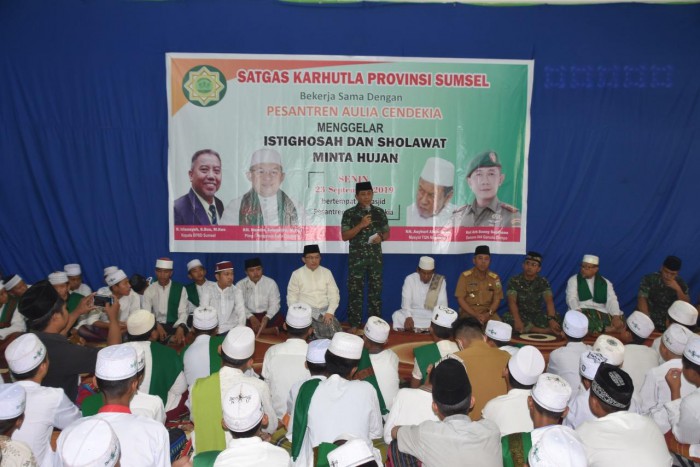 Dengan berharap ,seraya memohon agar diturunkan hujan,guna menetralisir situasi dan kondisi dampak dari Kebakaran Hutan dan Lahan ini,pada hari Senin(23/9) personil yang tergabung dalam Satuan Tugas Gabungan Kebakaran Hutan Dan Lahan Provinsi Sumatera Selatan mengadakan Istiqosah dan Sholawat minta hujan yang dilaksanakan di Pondok Pesantren Aulia Cendikia yang beralamat di Jl. AMD, Talang Jambe, Kec. Sukarami, Kota Palembang, Sumatera Selatan 30961.
