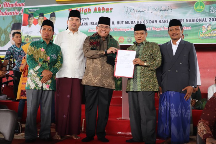 Pada rangkaian kegiatan Tabligh Akbar Dalam Rangka Memperingati Tahun Baru Islam 1441 H, Hari Ulang Tahun ke-63 Kabupaten Musi Banyuasin dan Hari Santri Nasional Tingkat Kabupaten Musi Banyuasin Tahun 2019 juga dihadiri langsung oleh Ketua Umum PBNU Prof Dr KH Said Aqil Siradj yang dalam kesempatan ini juga menyaksikan penganugerahan kepada Bupati Muba Dodi Reza sebagai Bapak Santri Millenial Muba, diserahkan langsung oleh Ketua Forum Pondok Pesantren Sumatera Selatan (Forpess), KH Arwani Arsyad.