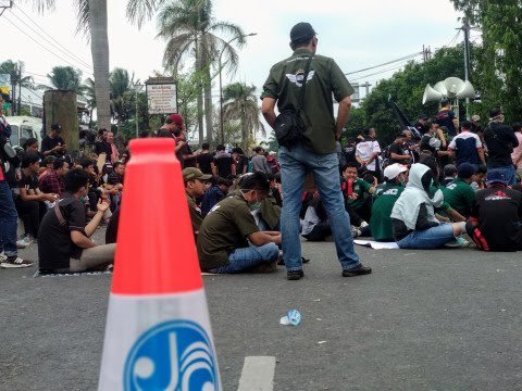 Ribuan sopir taksi online (Taksol) di Palembang menggelar aksi demonstrasi di depan kantor PT Gojek Indonesia Cabang Palembang, Kamis (3/10). Dalam tuntutannya, driver meminta agar tidak memangkas insentif sebesar 50 persen yang rencananya mulai diberlakukan pada 7 Oktober 2019. Aksi penolakan pemangkasan insentif ini juga dilakukan dalam bentuk offbid orderan secara massal.