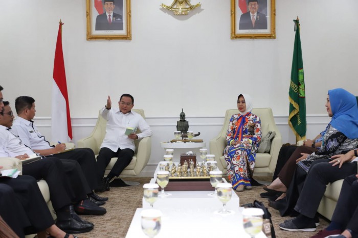 Sekayu, BP-– Rektor Universitas Binadarma (UBD) Palembang, Dr Sunda Ariana MPd MM bersama sepuluh orang jajaran unsur akademika di UBD Palembang mengunjungi Pemkab Musi Banyuasin (Muba), dalam rangka audiensi dengan Bupati Muba H Dodi Reza Alex di ruang Audiensi Bupati Muba, Senin (14/10/2019).