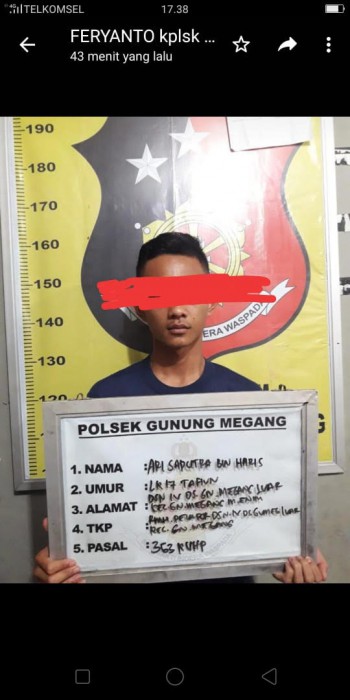 Sedangkan temannya telah ditetapkan sebagai DPO. Kini pelaku bersama barang buktinya telah diamankan di Mapolsek Gunung Megang untuk menjalani proses hukum.
