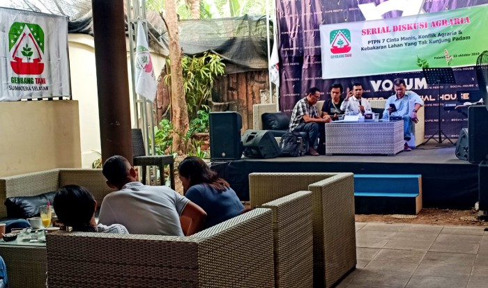 Sedangkan Ketua DPW Gerakan Kebangkitan petani dan nelayan Indonesia (Gerbang Tani) Sumsel, Anwar Sadat, dalam acara diskusi yang bertema, PTPN VII Cinta Manis, konflik agraria dan kebakaran lahan yang tak kunjung tuntas, bertempat di Volume Cafe Resto dan Sosial House, Rabu (23/11).