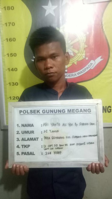 Menindak lanjuti laporan tersebut, petugas Polsek Gunung Megang, berhasil membekuk pelaku.