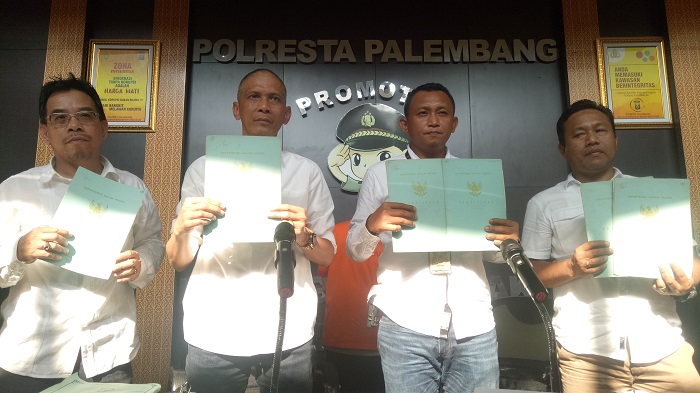 Palembang, BP–Satreskrim Polrestabes Palembang Unit Harta dan Benda (Harda) dan Badan Pertanahan Nasional (BPN) Kota Palembang membongkar pelaku penipuan dokumen surat tanah palsu.