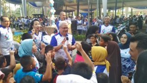 Direktur utama Bank Sumsel Babel Achmad Syamsudin melepaskan balon ke udara. Selain itu Bank Sumsel Babel juga menggelar berbagai lomba dan fun games yang diikuti segenap keluarga karyawan dan Direksi BSB.
