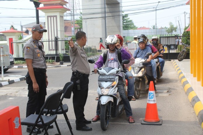 Hal serupa juga dilakukan Polrestabes Palembang, Rabu (13/11). Nampak, seluruh pengunjung baik membawa kendaraan roda empat maupun roda dua tak luput dari pemeriksaan petugas piket penjagaan Polrestabes Palembang.