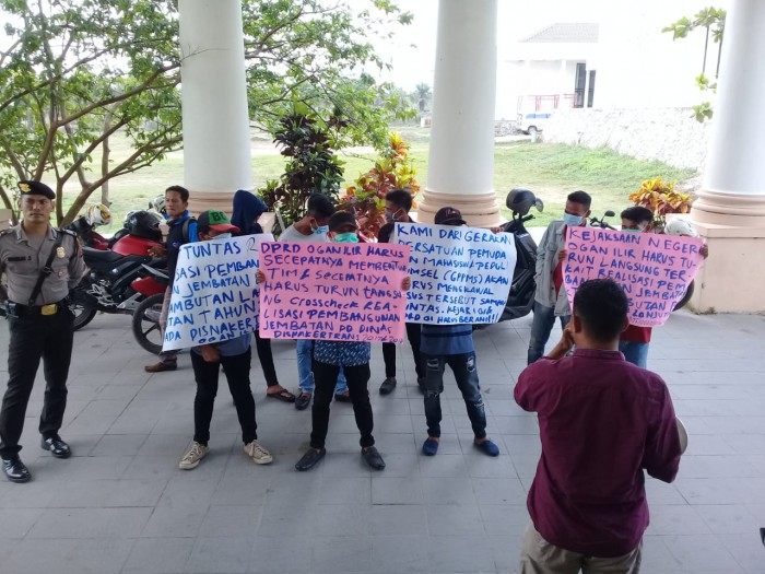 Koordinator aksi Sobirin mengatakan, meminta kepada Kejaksaan Negeri dan DPRD OI untuk mentelaah dan melakukan investigasi terhadap lanjutan bangunan proyek jembatan KTM Rambutan dari 2017 sampai 2018.