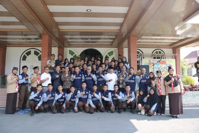 Baturaja, BP–Bupati OKU Drs H Kuryana Azis melepas peserta Perkemahan Wirakarya Daerah Sumatera Selatan Tahun 2019 (PWDSS 2019) utusan Kwarcab OKU di Rumah Dinas Bupati. Jumat (22/11) Kemarin.