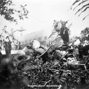 PESAWAT terbang type Douglas DC-3 yang bernama Specht milik KLM Royal Dutch Airlines jatuh setelah lepas landas di lapangan terbang Talang Betutu, Palembang, 6 Oktober 1937.